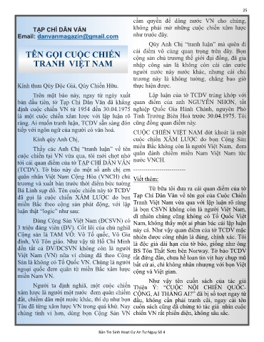 tới cái quan điểm của tờ TẠP CHÍ DÂN VĂN nước VNCH.