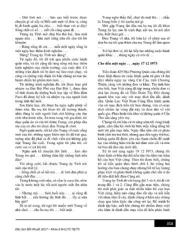 Trang không cười nữa, cô cầm ly coca lên, nhìn Trung úy Tính đi với trung đội 3 và 4, tôi đi với