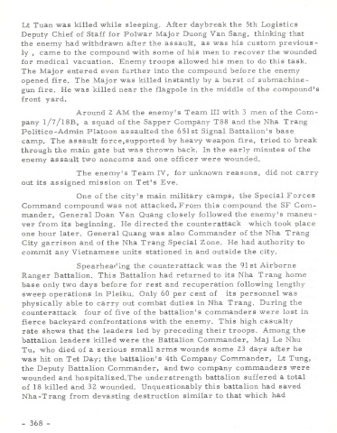 was hit on Tet Day; the battalionrs 4th CornPany Cornrnander, Lt Tung'