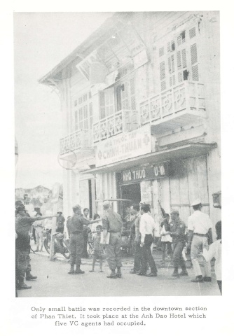 4 ..4. .-z -'/)?, /z '/4 .', ;-- - r- .-. _;. ., t ._, { Only srnall battle was recorded in the downtown section of Phan Thiet, It took place at the Anh Dao Hotel which f ive VC agents had occuPied,