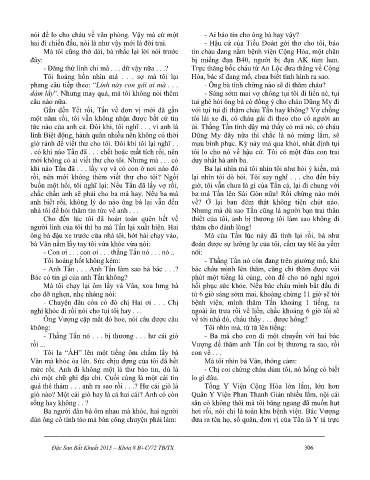 . có khi nào Tấn đã . . . chết hoặc mất tích rồi, nên tôi lo cho nó về hậu cứ. Tôi có một đứa con trai