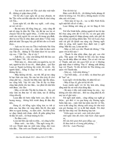 - Anh em bà con của Tấn ở tuốt trên Sài Gòn riêng. Một lúc sau, Loan mở lời :