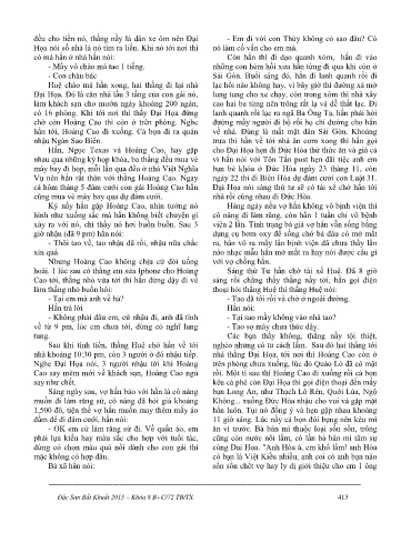 hoài. 1 lúc sau có thằng em sửa Iphone cho Hoàng Sáng thứ Tư hắn chờ tài xế Huệ. Đã 8 giờ