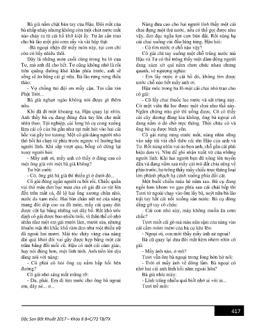 nước da xạm mốc. Hai bàn chân nứt nẻ của nàng trật tay hất cái nồi xuống sàn nước. Bà cụ dùng