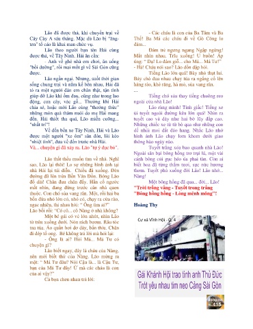 "bồi dưỡng", rồi mai mốt gì về Sài Gòn cũng - Hả! Cháu nói sao? Lão dồn dập hỏi.
